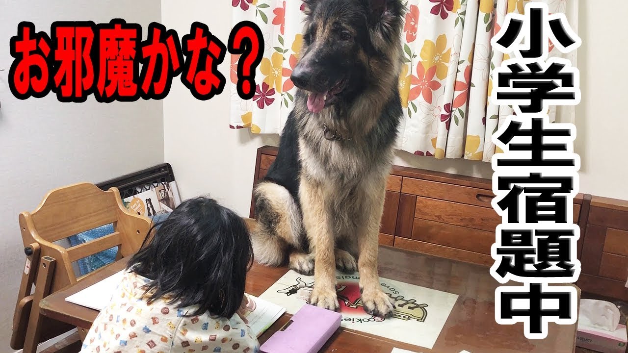 #シェパード犬と小学生の夏休み宿題風景